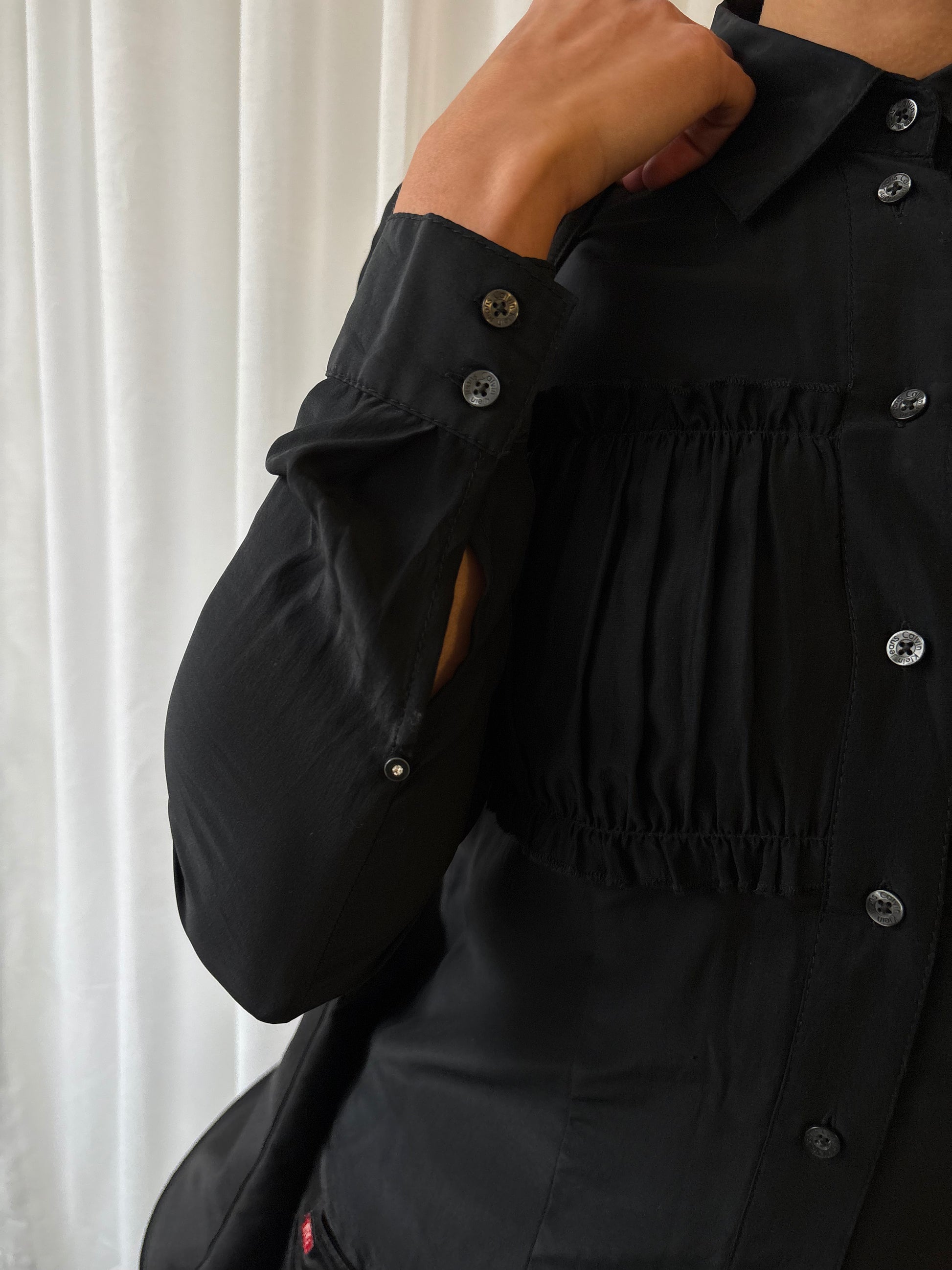 Calvin Klein Jeans black silky shirt with ruched detail.