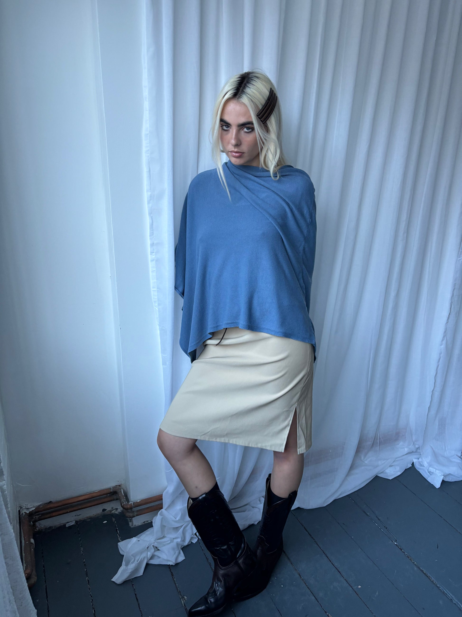 Vintage Dusky Blue Poncho