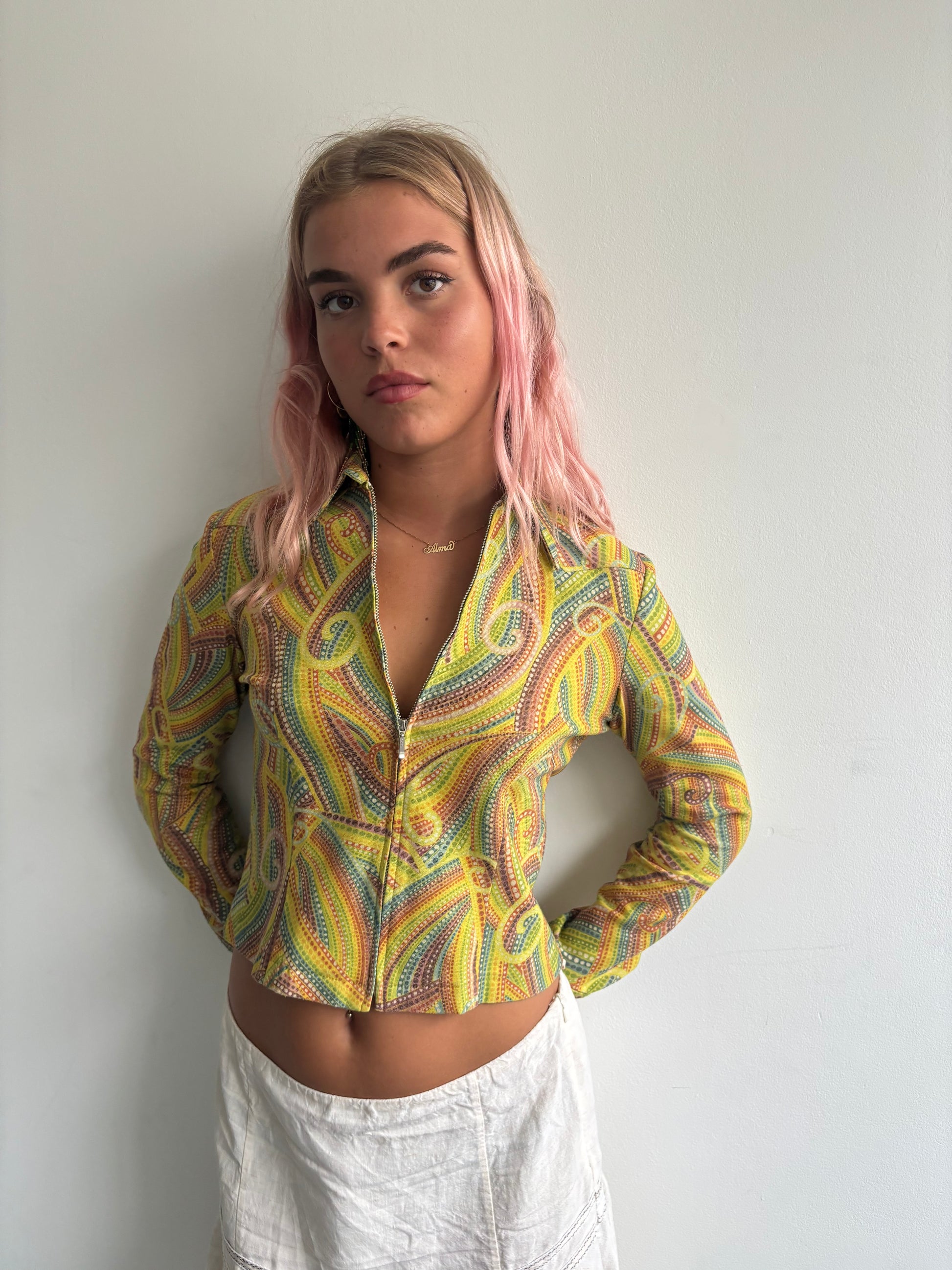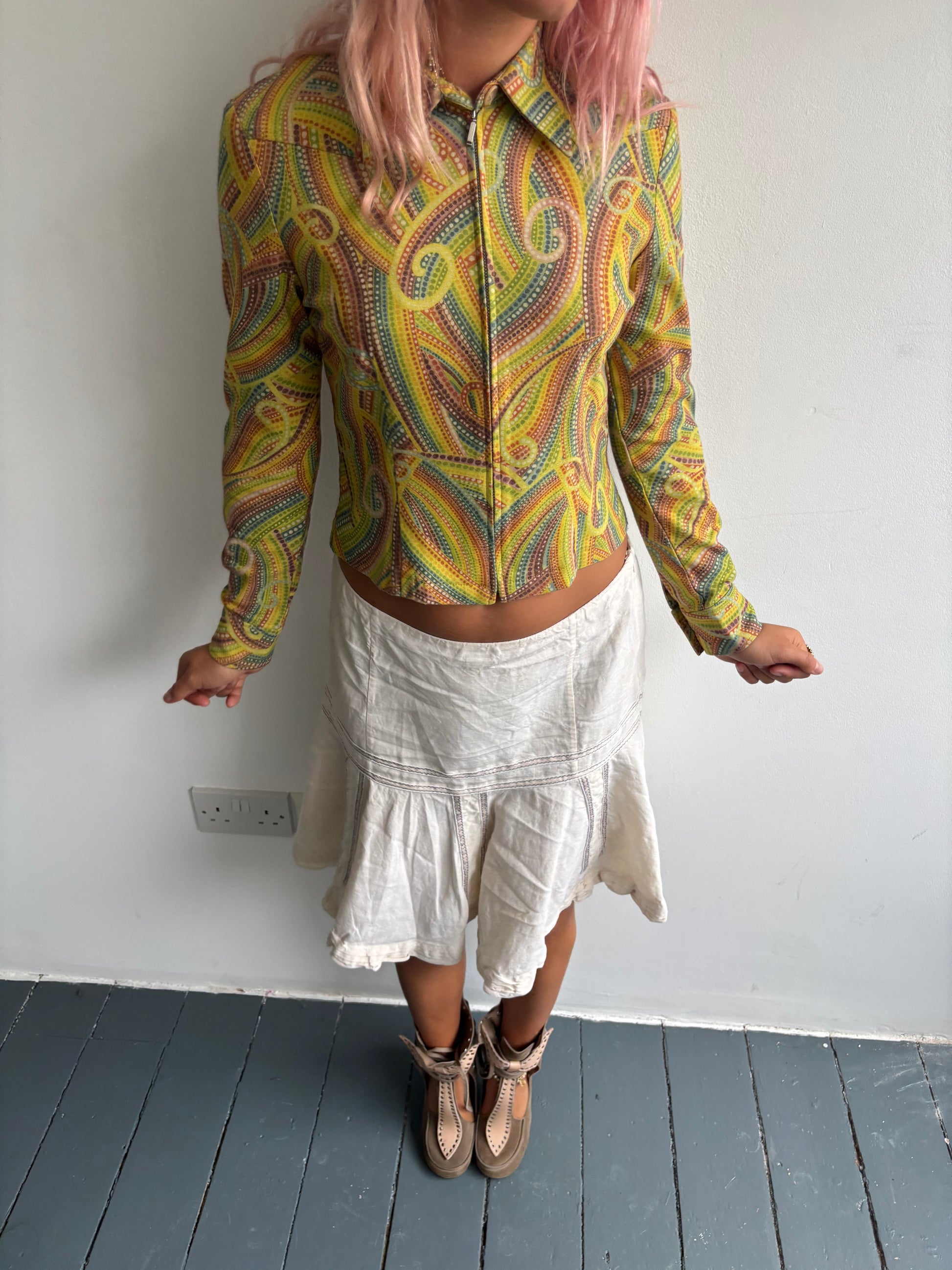 Vintage Jaspal yellow/green swirl printed fitted zip up jacket.