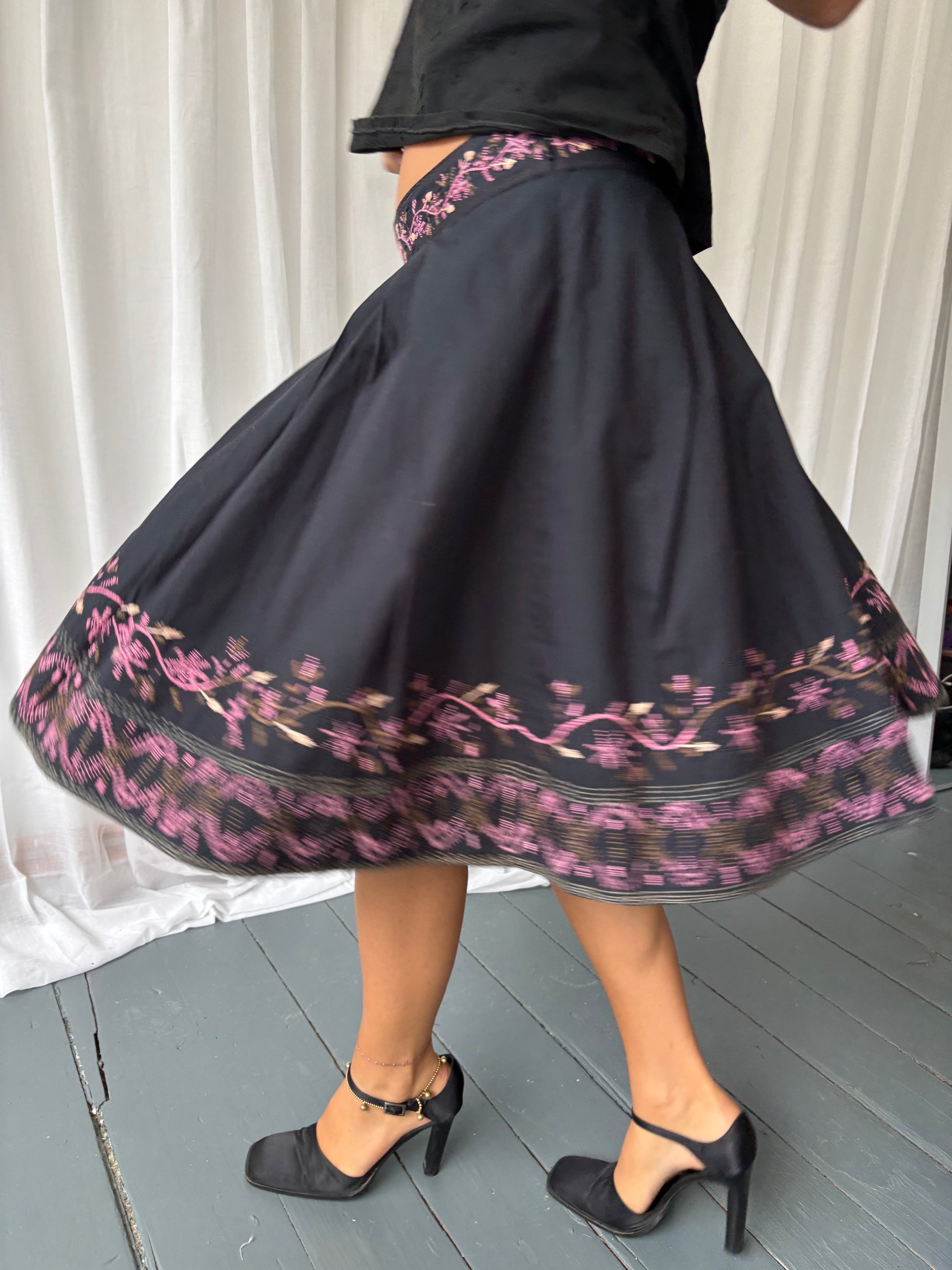 Paul Smith Black Label black midi skirt with pink embroidery flower detail.